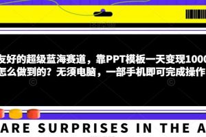本套小白友好的超级蓝海赛道,靠PPT模板一天变现1000+是怎么做到的?无须电脑,一部手机即可完成操作由启航说运营整理,仅用于学习交流,土豪请支持原创作者,本站收益用于平台服务器、云存储CDN等网站运营成本。