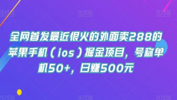 本套全网首发最近很火的外面卖288的苹果手机(ios)掘金项目,号称单机50+,日赚500元由启航说运营整理,仅用于学习交流,土豪请支持原创作者,本站收益用于平台服务器、云存储CDN等网站运营成本。