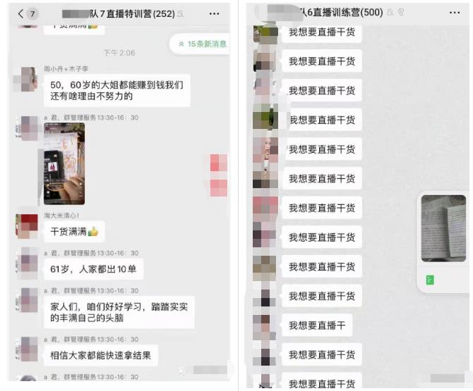 群内鸡血满满,感觉又回到了微商的那种感觉,其实挺好的,特别是女人,容易被这种气氛打动,干劲满满,群内也要经常晒单,鼓励那些不敢直播的人去直播,去开单成交